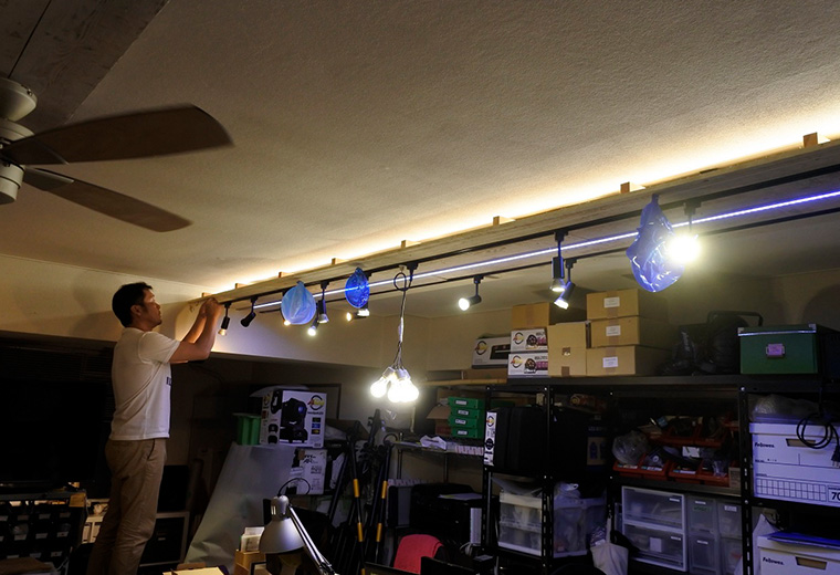 事務所にて図面や見積等の書類作成のほか、試作品のテストや、現場の仕込みをしています。