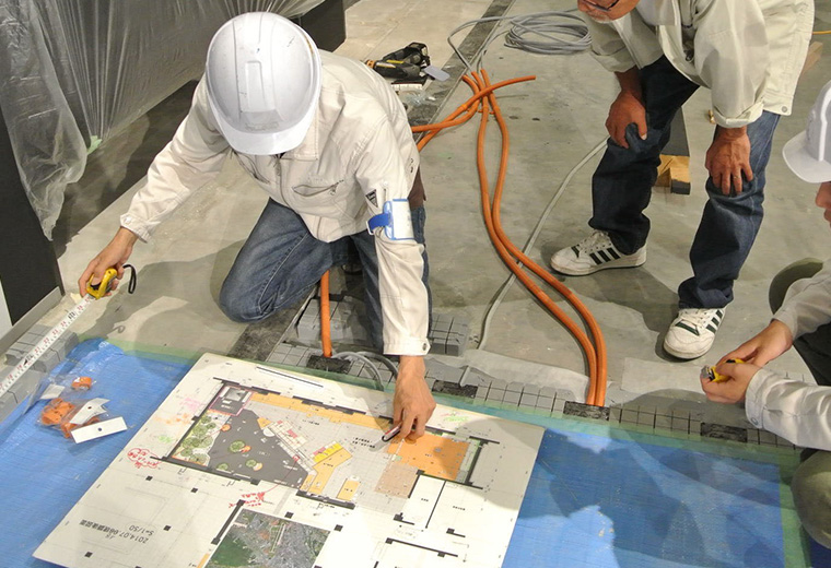 進行中の現場の様子を確認しに、現地へ打ち合わせに行きます。(移動は、電車だけではなく、車で移動することもあります。)